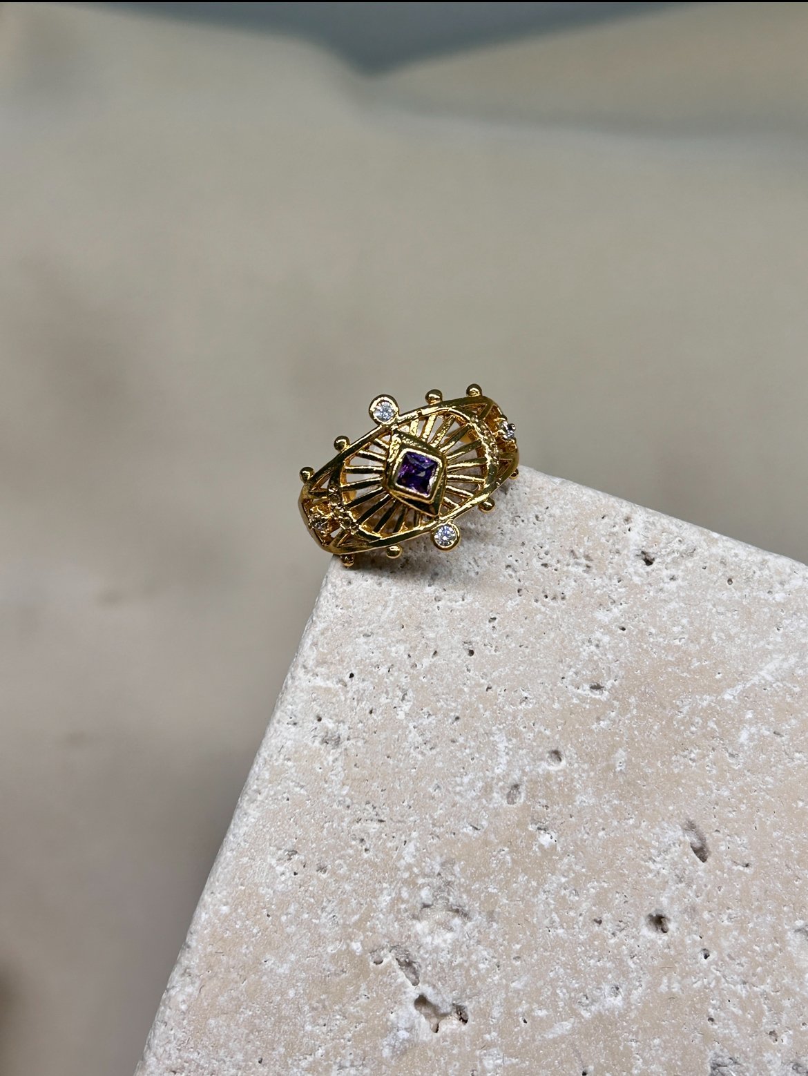 Mor Taş Dörtgen Kesim Yüzük